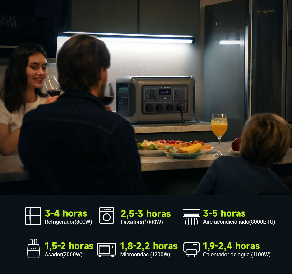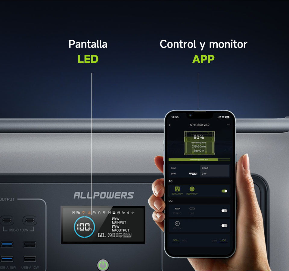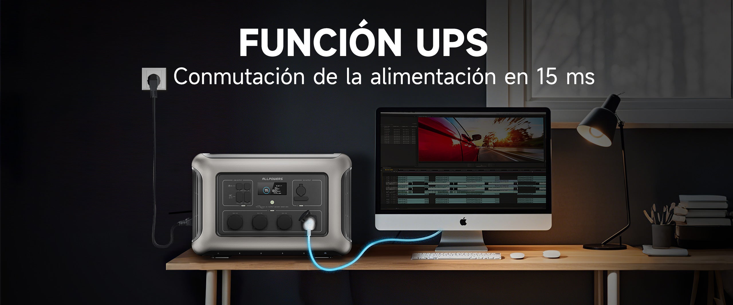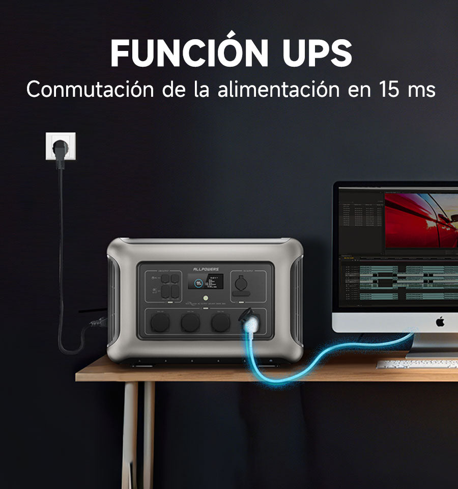La fuente de alimentación portátil ALLPOWERS R3500 está equipada con UPS (fuente de alimentación ininterrumpida). Después de activar la función UPS, incluso si hay un corte de energía repentino, los productos eléctricos conectados no se detendrán y podrán usarse tal como están. Hay una interrupción momentánea al cambiar, pero sólo 15 ms si el cambio dura más.