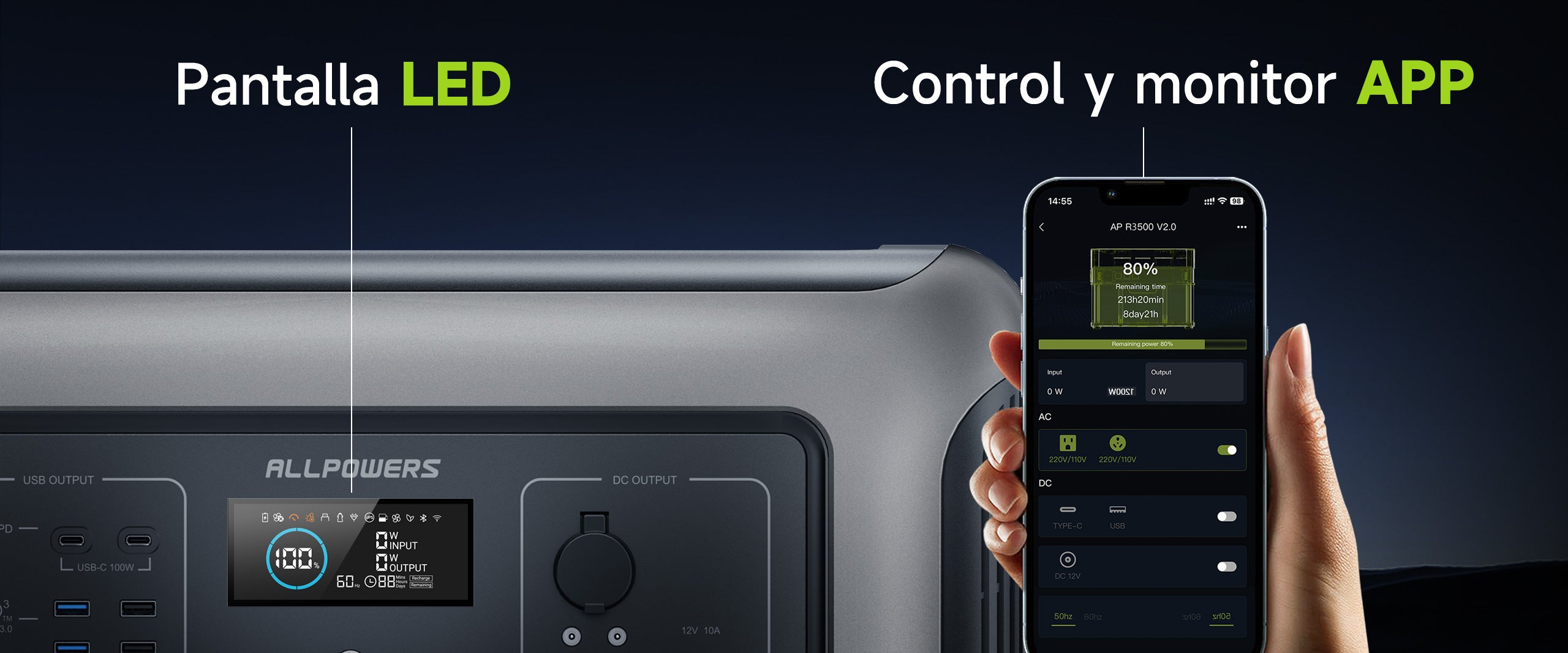 Fácil de realizar conectándose con la APLICACIÓN ALLPOWERS a través de monitoreo de energía WIFI/configuración de funciones/control remoto/actualización del sistema.