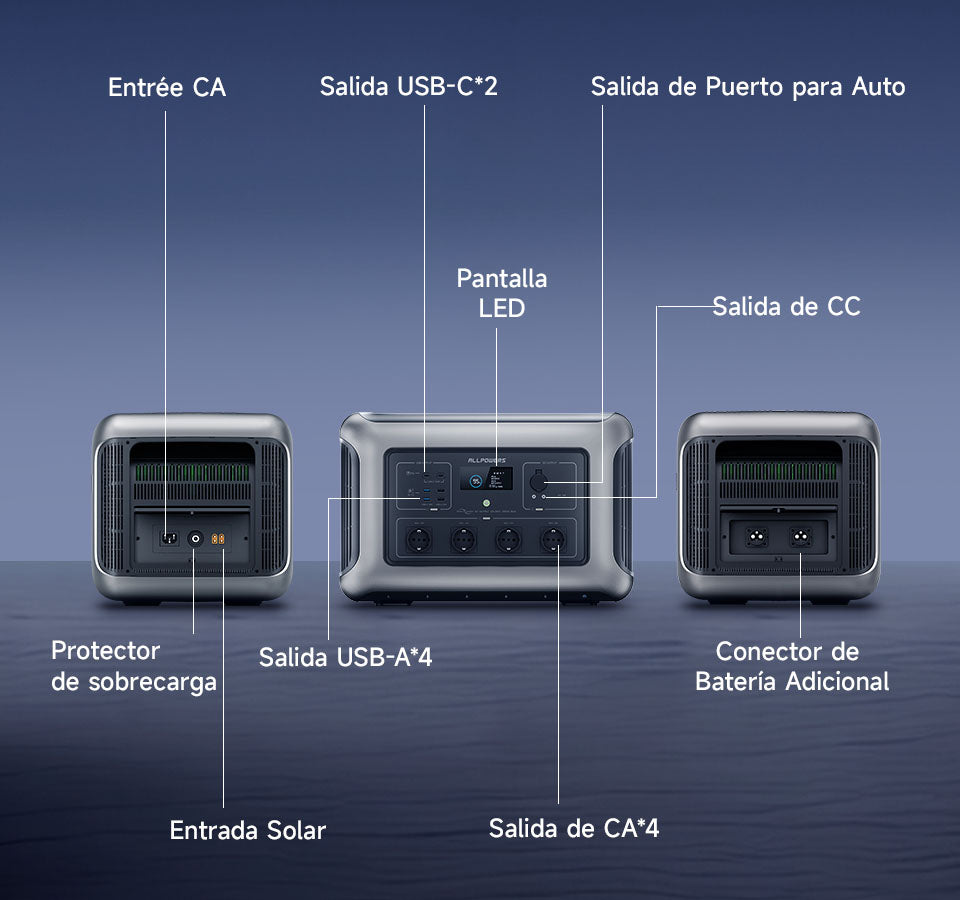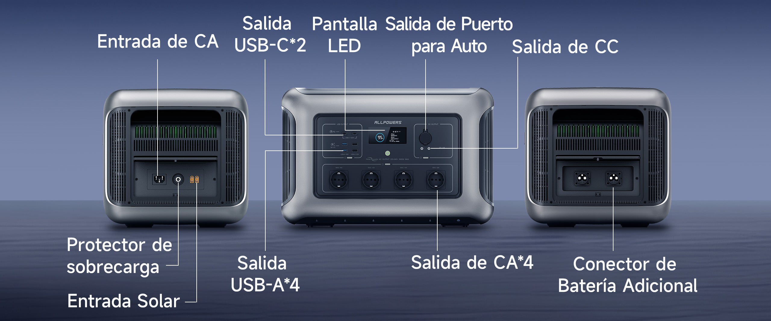 - Nota 1: El producto no incluye cargador de coche ni cable de panel solar. Compra de paquete de central eléctrica y paneles solares incluye cable solar y no incluye cargador para auto