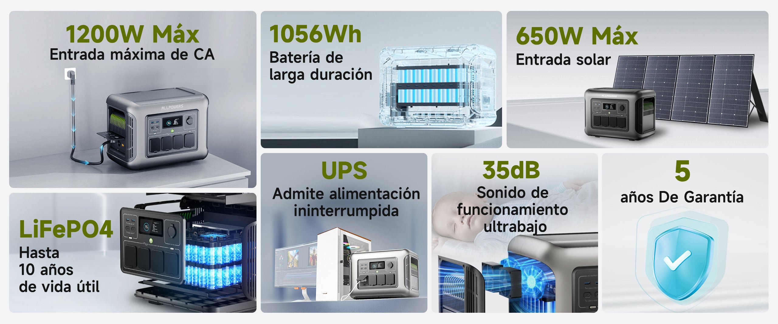 ALLPOWERS R1500 LITE Estación de Energía Portátil 1600W 1056Wh LiFeP04 Batería
