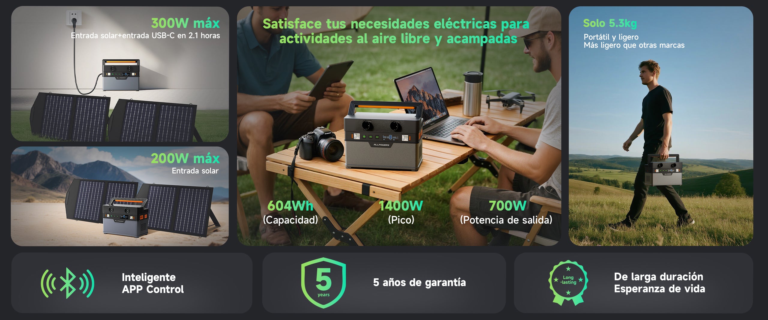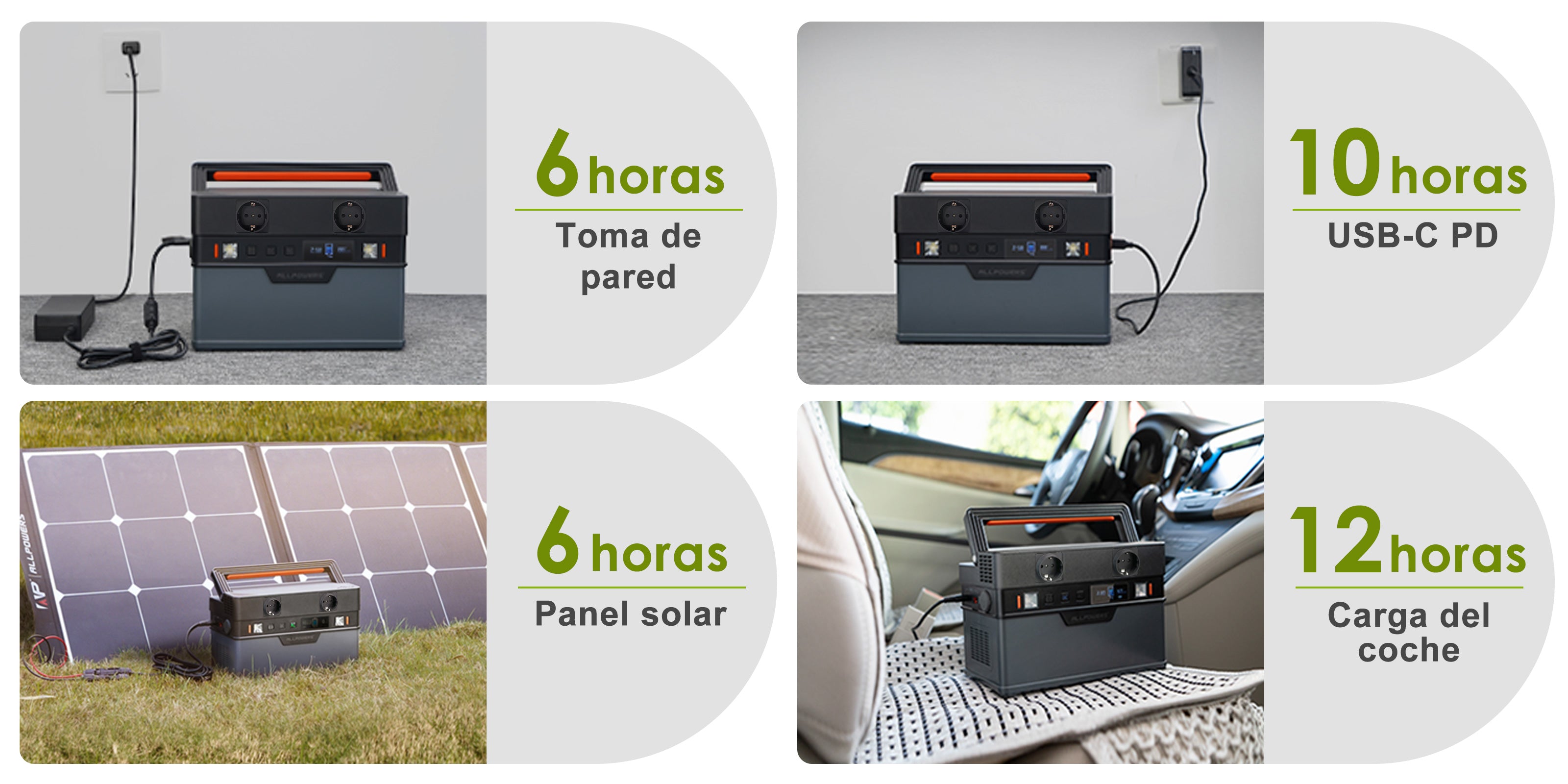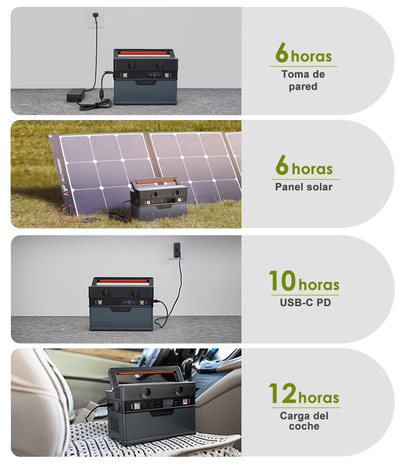 - 6 formas de recargar (AC/USB-C/AC+USB-C/Solar/Car/Solar+USB-C);