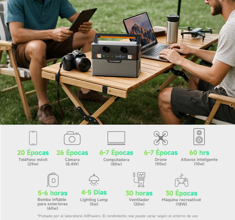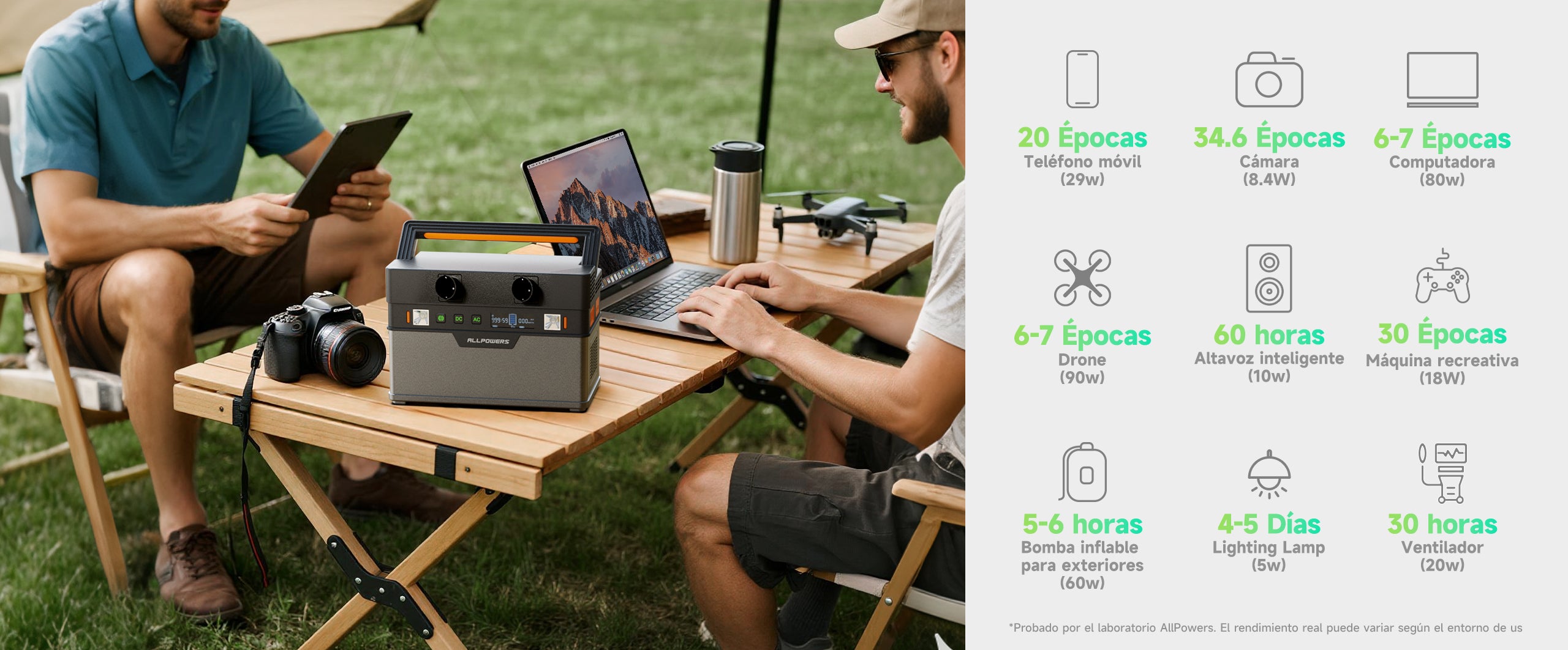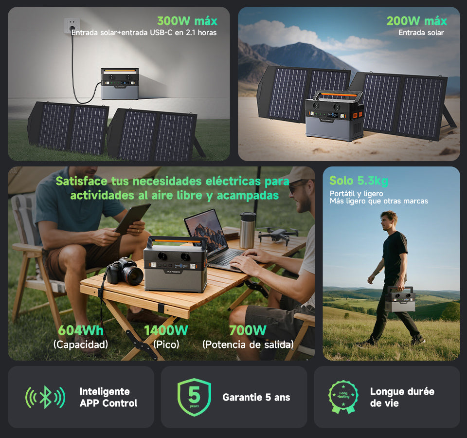 - 6 formas de recargar (AC/USB-C/AC+USB-C/Solar/Car/Solar+USB-C);