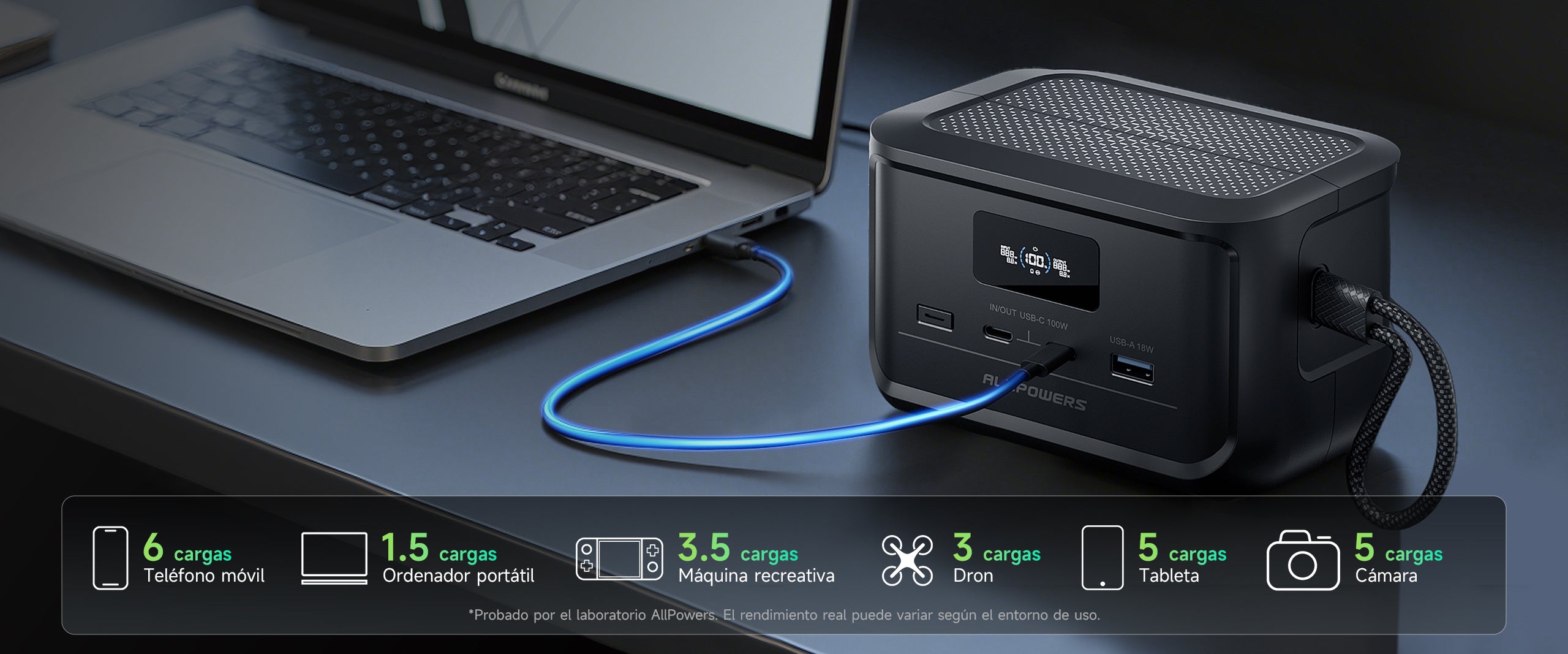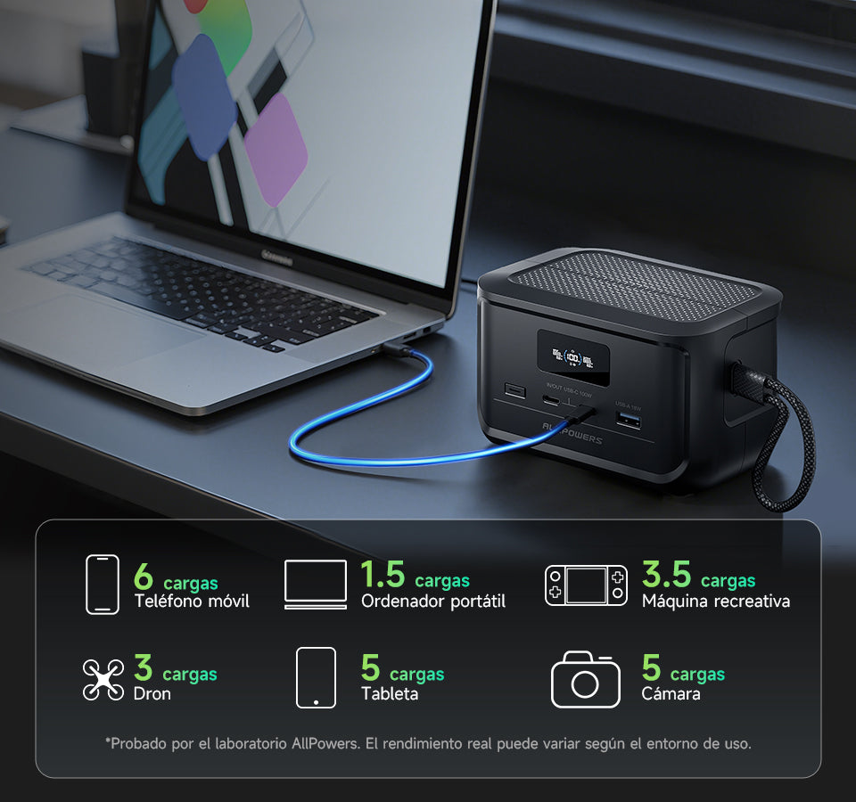 - Mini fuente de energía: 99.2Wh de energía en tu mochila, salida máxima de 128W;